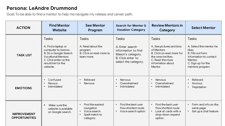 For this study, I wanted to examine the usability of the mentor’s website. I wanted to see how effortlessly users can find their occupation and career path, locate mentors for their careers, read about the mentor, and set an appointment date & time when completed.
